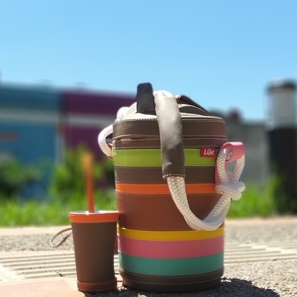 Termo para Agua fría de 2.5 litros, de la marca Termolar. Termo forrado artesanalmente en cuero símil en color marrón café , con detalles en tiras de varios colores combinados. Incluye guampa. No incluye la bombilla. Solicitar presupuesto para envíos nacionales.