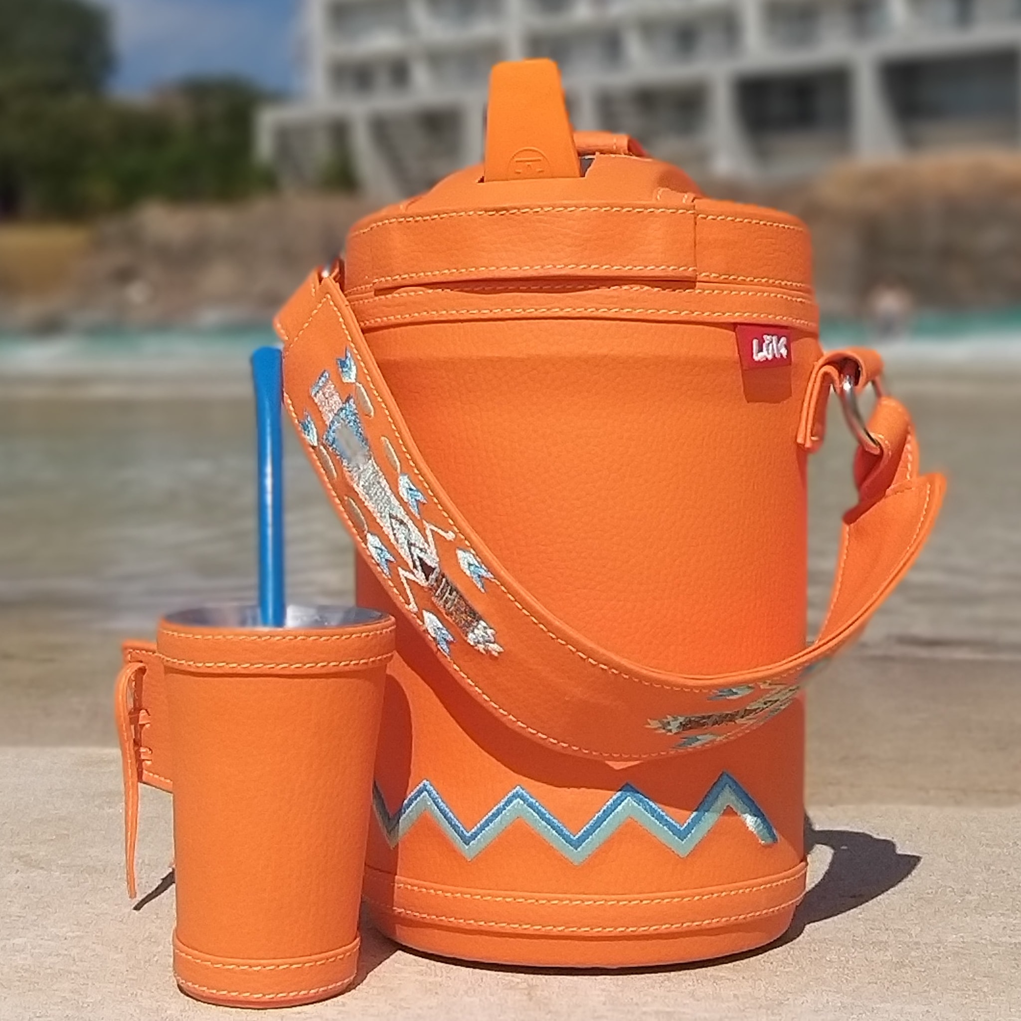 Termo para Agua fría de 2.5 litros, de la marca Termolar. Termo forrado artesanalmente en cuero símil color Naranja con motivo diseño bordado en el frente y en la manija. El Nuevo Fliptop es un producto con aislamiento térmico en PU, que garantiza alta resistencia, durabilidad y conservación térmica diferenciada. Mantiene tus bebidas frías mucho más tiempo. Incluye guampa. No incluye la bombilla. Este producto esta disponible en stock y si necesitas personalizar, el nombre bordado es sin costo adicional. Solicitar presupuesto en el link de contacto para envíos nacionales e Internacionales.